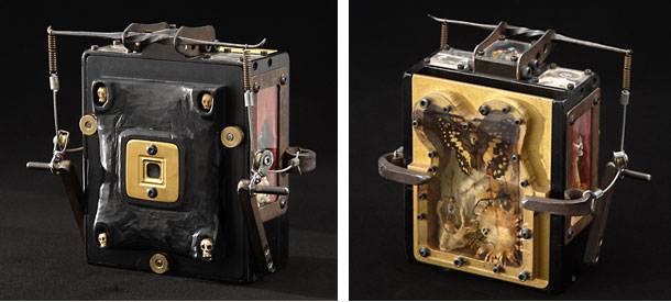 Skull (Roadside Camera) 2001 Aluminum, Steel, Acrylic, Bone, Fabric & Insects 18.5" x 9" x 9" $12,000.00 sold