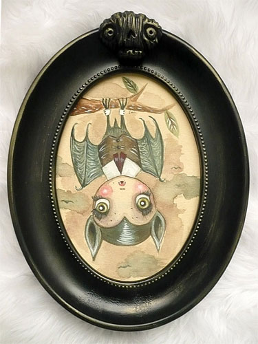 "Bat Boy" watercolor on paper 9" x 6" framed $600.00 sold
