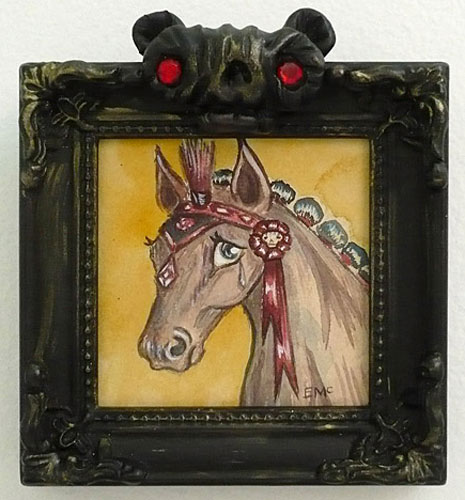 "Secretariat" watercolor on paper 3" x 3" unframed 5" x 5" framed $250.00 sold