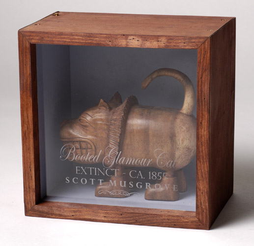 "Booted Glamour Cat – Display" wood 11.5" x 11.5" x 7.5" $1,500.00 sold