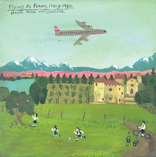 "Flying to Italy" Acrylic on Panel 8" x 8" inches $800 SOLD