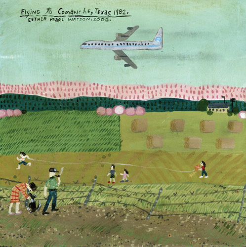 "Flying to Comanche, Texas, 1982" Acrylic on Panel 8" x 8" inches $800